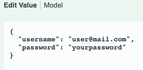 Edit username and password with your credential: